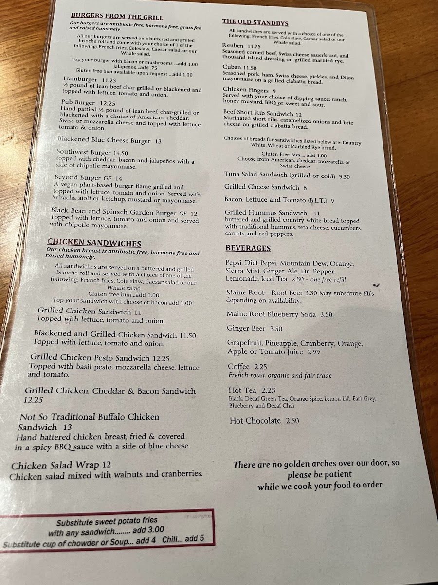 Whether you’re craving the classic fish and chips or a satisfying burger, Thirsty Whale Tavern stands out for its generous portions and fresh ingredients. The cozy atmosphere, coupled with friendly service, makes it the perfect spot to unwind after exploring nearby Acadia National Park. Pairs well with a local craft beer for a truly authentic experience!